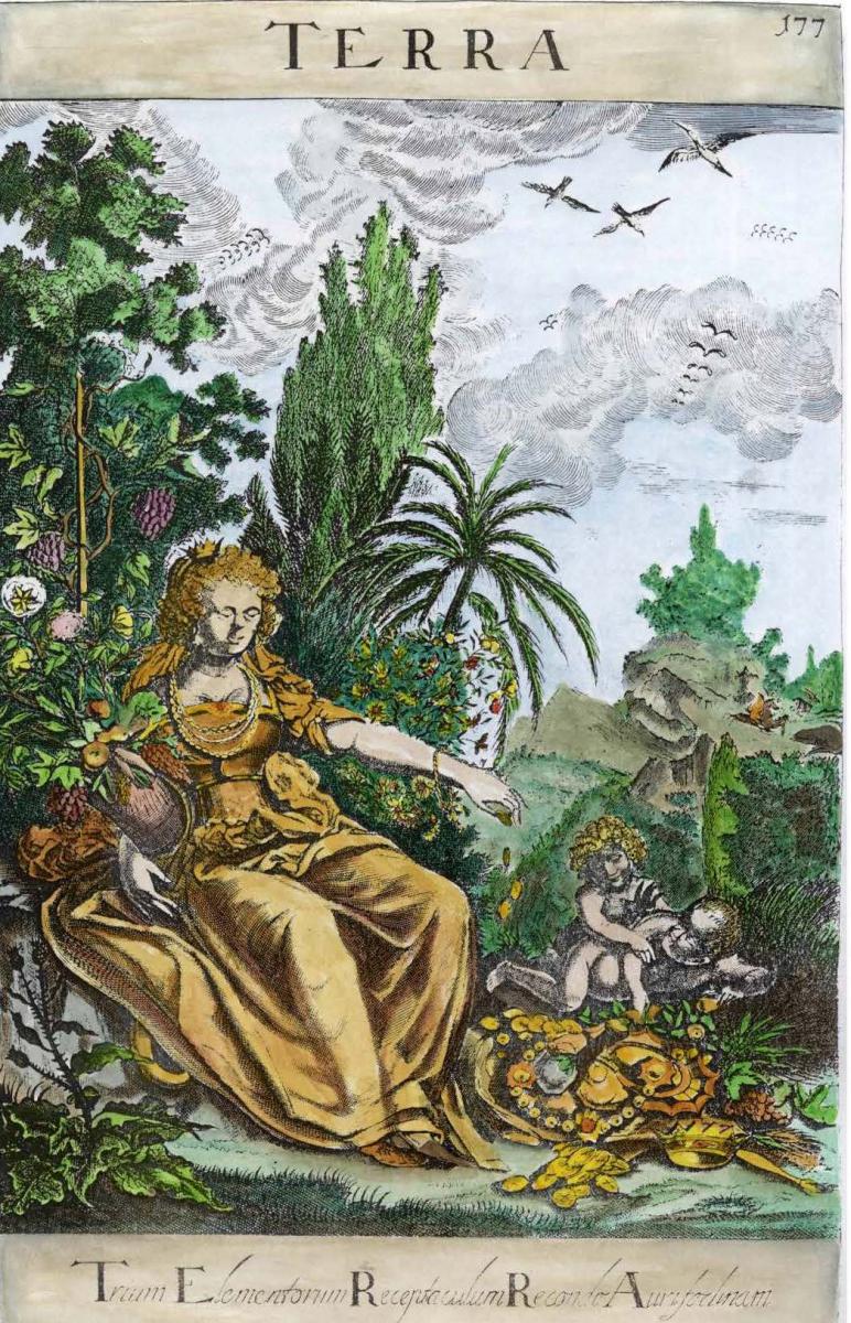9. TERRA. Акроним: «Я скрываю золотоносное убежище трёх элементов». Земля — это мать элементов, как говорит Гермес; из земли они выходят и в землю возвращаются. Камень философов — это тоже Земля, поэтому говорят, что его можно найти повсюду — но какая именно Земля, искатель должен понять сам. Философский камень — это та же самая Земля, но доведённая до высшей степени Совершенства.