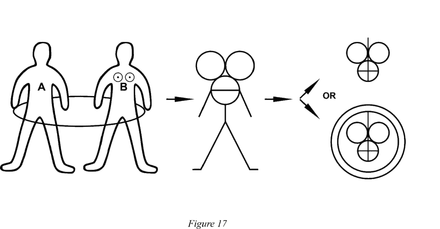 Давайте посмотрим на второй пример. Два человека (партнера) должны быть объединены с помощью так называемых «связывающих заклинаний» Мы назовем их «А» и «B» См. рисунок 17.