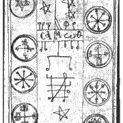 Печать ангелов Власти, которые господствуют над ангелами и духами всех элементовЗАКЛИНАНИЕЯ, N.N., слуга Бога, желаю вызвать тебя, и заклинаю тебя, дух Alymon, самыми ужасными словами: Сатер (Sather), Эхомо (Ehomo), Гено (Geno), Поро (Poro), Йеховах (Jehovah), Элохим (Elohim), Волнах (Volnah), Денах (Denach), Алонлам (Alonlam), Офиел (Ophiel), Зофиел (Zophiel), Софиел (Sophiel), Хабриел (Habriel), Элоха (Eloha), Алесимус (Alesimus), Дилет (Dileth), Мелохим (Melohim) и всеми самыми святыми словами, которыми я смогу заставить тебя появиться передо мной в приятном и прекрасном человеческом обличье и исполнить то, что я прикажу тебе, это так же верно, как и то, что Бог придет для того, чтобы судить живых и мертвых. Да будет так. Да будет так. Да будет так.