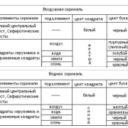 Все цветные квадраты на данной скрижали окрашиваются в цвет элемента данной скрижали. Например, все цветные квадраты на Воздушной скрижали будут желтыми; на Земной – черными, и т.д.