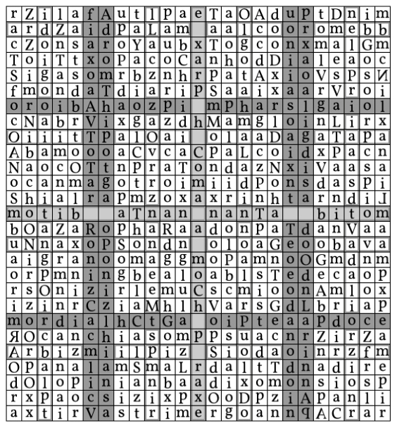 В средней линии у тебя «o r o i b A ha o z p i». Над ней — 6 линий, и под ней — 6. Эта линия называется Линией Святого Духа.
