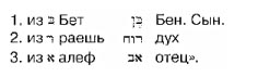 Из того же Речения Берешид взяв по нотарикону две буквы, первую b бет и последнюю t тав, выйдет Речение целое tB Бас, Дщерь, а оставшиеся в середине четыре буквы составят речение yIwar Роши, Моей Главы. Продолжим еще сей пример, взяв из текста второе по порядку речение asrsB БАРА. Оно по нотарикону даст нам три Речения изходящие из 3-х его букв, как то: