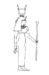 8. Возьмите в руку ваш лотосовый жезл. Примите Божественную Форму Хатхор, одетой в зеленое с красным одеяние, при этом вибрируя «Хатхор» [произносится как Кхет кхру].