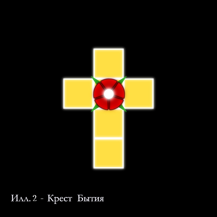 Однако возвышение это невозможно без содействия Божественного Духа, исходящего из Кетер, а поэтому на лицевой стороне Креста участок над Малкут окрашен в белый цвет: белый цвет — символ Духа, освобожденного от оков Материи.