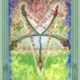 Четверка Мечей — пожалуй, самая красивая из всех числовых карт этой масти. Харрис дотошно следует соответствиям из цветовых шкал создает великолепный портрет равновесия и порядка. 3 ноября 1939 года она пишет Кроули: