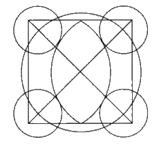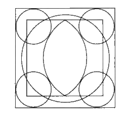 4. Начертите в углах квадрата четыре малых окружности, касающиеся vesica, с центрами, лежащими на большой окружности.