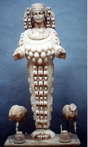 • Первоначальная композиция: образ Дианы-охотницы. Крылатая богиня, увенчанная короной и подпоясанная сверкающим золотым поясом. Правой рукой она льет на орла пламя факела, а левой льет на льва воду из чаши. Между ног у нее стоит лунообразный котел, над которым поднимаются серебряные струи благовонных испарений2.