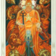 Священник, сочетающий их браком, — не кто иной, как Отшельник из Ату IX. Он совершает магический Знак Входящего, простирая руки вперед над головами жениха и невесты. Руки его обвиты символом слова, свитком (эдакое космическое свидетельство о браке), который перекручен петлей и образует бесконечную ленту Мебиуса.