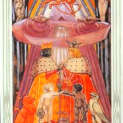 О жизни и творчестве Алистера Кроули известно много (хотя подчас нелегко отделить факты от многочисленных домыслов и сплетен, окружающих его личность и по сей день), поэтому ограничимся здесь лишь краткими биографическими сведениями, имеющими непосредственное отношение к предыстории и истории создания Таро Тота. В 1898-1900 гг. Кроули состоял в Герметическом ордене Золотой Зари, учение и сама структура которого оказали на него огромное влияние и во многом предопределили его дальнейшую самостоятельную работу. От посвященного Золотой Зари 5-й степени (так называемая степень Младшего Адепта) требовалось, среди прочего, создать собственную колоду Таро по образцу, предоставленному орденом. Образцом служила колода, созданная главой ордена — С.Л. Макгрегором Мазерсом и его женой — художницей Мойной Мазерс. Достигнув степени Младшего Адепта, Кроули, как и прочие, наверняка выполнял это задание и глубоко погрузился в образную систему орденской колоды. Впоследствии эта система и послужила прототипом для колоды Тота, хотя и образный ряд, и смысл арканов, и, отчасти, даже структура колоды подверглись изменениям.