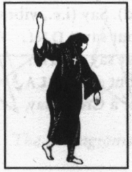 — В полночь, при поклонении Хепри (лицом на север) совершается знак Исиды Скорбящей, в котором телу придается форма свастики: руки согнуты в локтях, правое предплечье при этом поднято, левое — опущено; голова наклонена к левому плечу (взгляд направлен на левое предплечье); стопы повернуты влево; правая стопа приподнята на носок, правое колено согнуто.