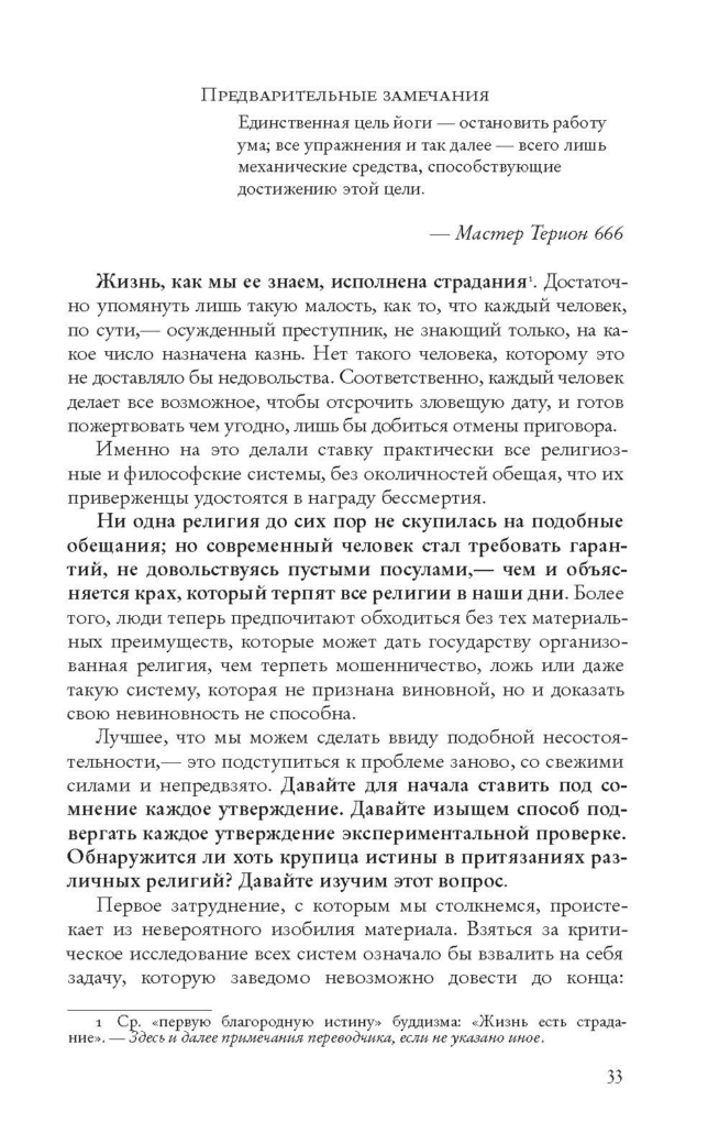 Предполагалось, что я буду диктовать, а Виракам записывать; и в случае, если возникнет малейшая неясность — неясность с точки зрения совершенно несведущего и не самого образованного читателя, то есть, попросту говоря, самого обыкновенного человека из низшего сословия, — то я буду должен изложить свою мысль по-иному, более простым языком. Таким способом мы надеялись написать книгу, которую сможет понять даже самый неотесанный искатель духовного просвещения