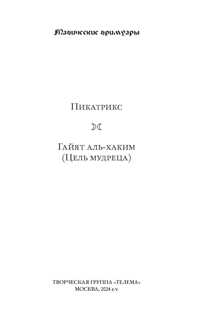 «Пикатрикс» — принятое в европейской традиции название арабского магико-астрологического трактата, в оригинале озаглавленного «Гайят аль-Хаким», что значит «Цель мудреца». Этот трактат представляет собой обширную компиляцию из 224 источников и содержит сведения по герметической, неоплатонической и исмаилитской философии, сабейской астральной религии, астрологической магии, алхимии и практике изготовления талисманов. Оккультные методы и воззрения, изложенные в этой книге, восходят к античным временам и оказали значительное влияние на европейскую магическую традицию.