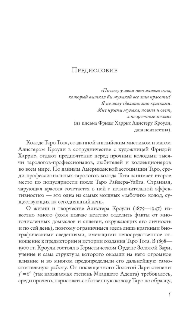 Эту книгу, так уж вышло, мне пришлось прочесть несколько раз. Мне очень понравилось то, что в предисловии подробно рассказывается о художнице Фриде Харис и ее взаимоотношения (подчас непростые) с Алистером Кроули. Невольно задумался о том, какой колоссальный труд она проделала!